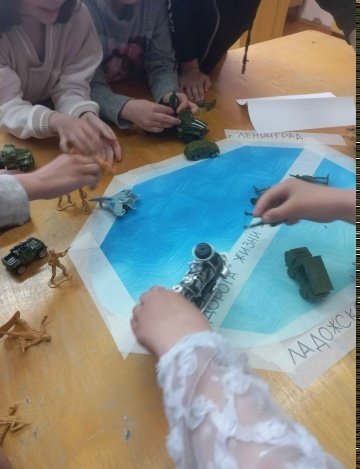 Ребята своими руками создали панораму Дороги жизни через Ладожское озеро. Сделали поделку "Журавли".