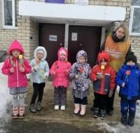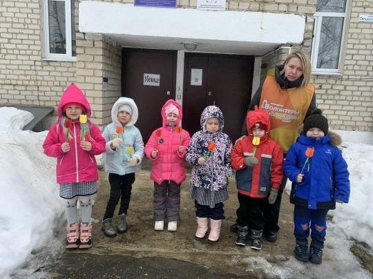 Обучающие ШРТРД «Росток» и волонтёры Шумячского волонтёрского штаба поздравили с 8 марта жительниц улицы Сельхозтехника.