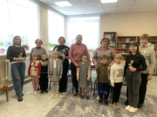 Дети подарили цветы, сделанные своими руками, пожелали милым дамам, здоровья, счастья и удачи.