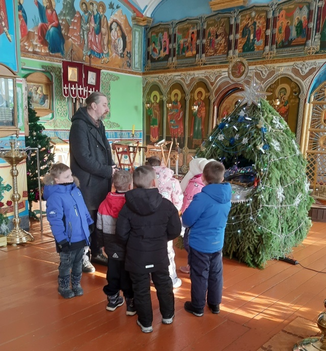 Настоятель Свято – Ильинского храма отец Сергий рассказал детям историю рождения Младенца. Ребята увидели смоделированное место – пещеру, где родился Иисус Христос, сияющую яркую звезду, которая привела волхвов к Младенцу. История рождения и первых лет жизни Иисуса Христа до начала открытого служения Его спасению рода человеческого, казнь мучительным и назидательно-показательным способом не могли не тронуть души юных слушателей. Значительнее другое – его послания о мире и взаимной любви актуальны для человечества во все времена.